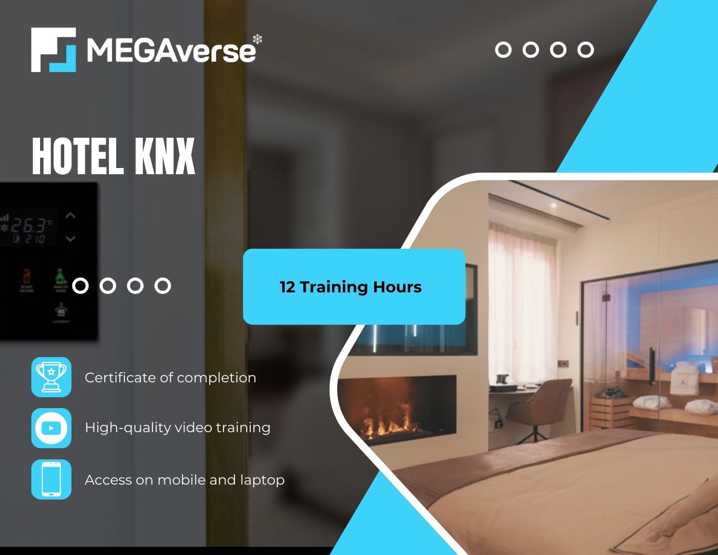 The HOTEL KNX course is a comprehensive technical training program focused on the integration of KNX technology in modern hotel environments. It covers both theoretical concepts and practical implementations of KNX and GRMS (Guest Room Management System) to achieve energy-efficient, intelligent hotel automation.
